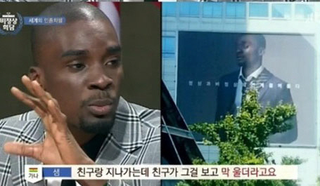 이날 샘 오취리는 "어렸을 때 하얀 것은 좋다, 까만 것은 나쁘다고 배웠다"며 입을 열었다. 그는 "한국에 처음 와서 엑스트라 아르바이트를 했을 때 백인은 앞줄에 세우고 흑인은 뒷줄에 세우는 차별을 당했다"고 밝혔다.