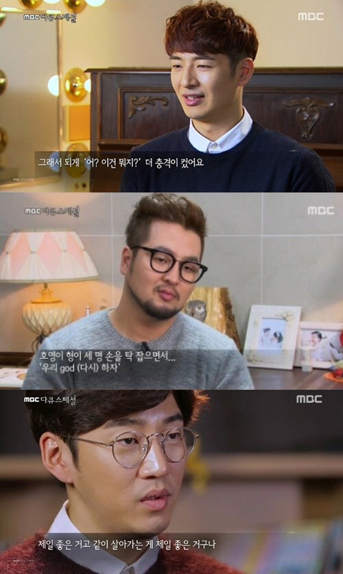 이어 같은 멤버 김태우는 손호영의 자살 시도를 떠올리며 "손호영 형이 호흡기를 꽂고 누워 있더라. 윤계상, 데니안 형이랑 셋이 갔고 박준형 형은 미국에 있었다. 손호영 형이 세 명 손을 탁 잡으며 '우리 god 하자'고 말했다"고 설명했다.