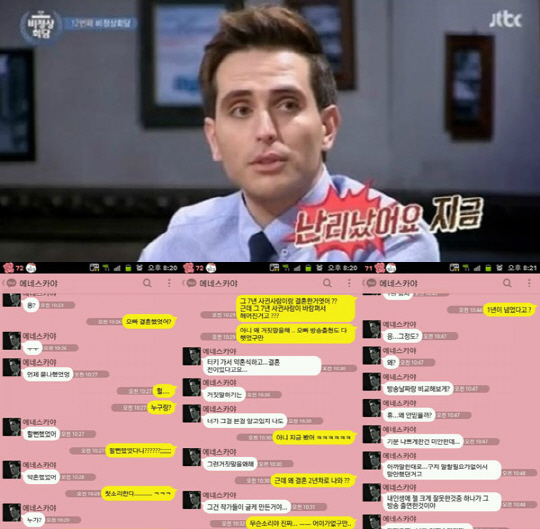 이에 여성은 "그런데 왜 결혼 2년차로 나와?"라는 추궁에 에네스 카야는 "작가들이 그렇게 만든거다"면서 "내 인생에서 제일 크게 잘못한 것 중 하나가 그 방송에 출연한 거다"라고 말한 카톡 내용이 공개됐다.