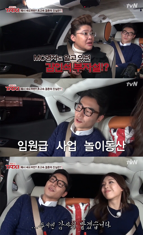또 김인석은 "누가 그러는데 연예인이 가까운 곳으로 신혼여행 가면 100% 속도위반이라고 한다더라"고 말해 눈길을 끌었다.