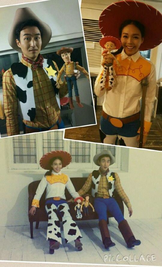 공개된 사진 속에는 애니메이션 '토이스토리' 등장인물들을 연상하게 만드는 분장을 한 안젤라박과 김인석의 모습이 담겼다.