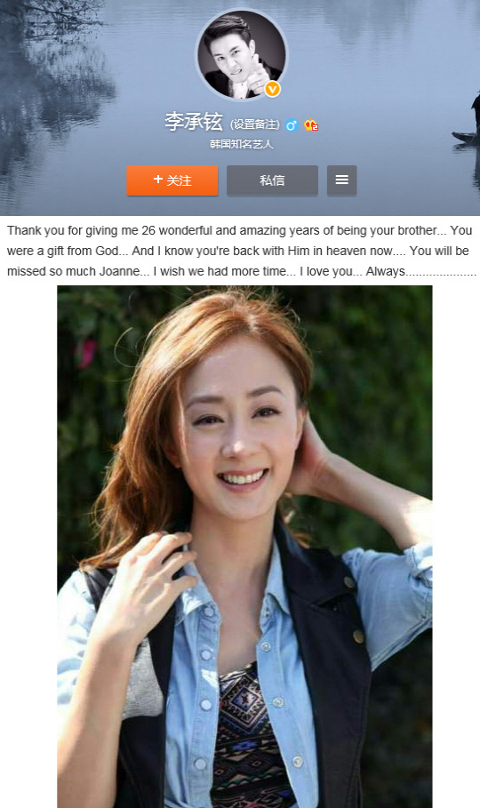 죠앤 사망 <사진=이승현 웨이보 캡처> |