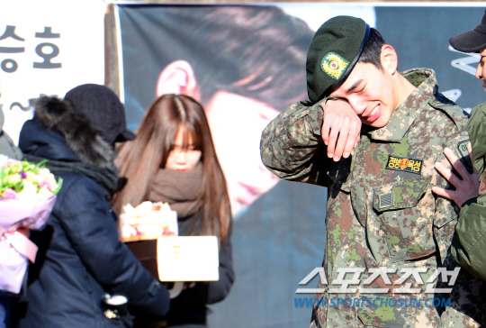 유승호는 뜨거운 눈물을 흘리며 전역의 기쁨을 팬들과 함께 했다. 그는 "팬 여러분들 기다려주셔서 정말 감사하다"고 인사를 전했다.