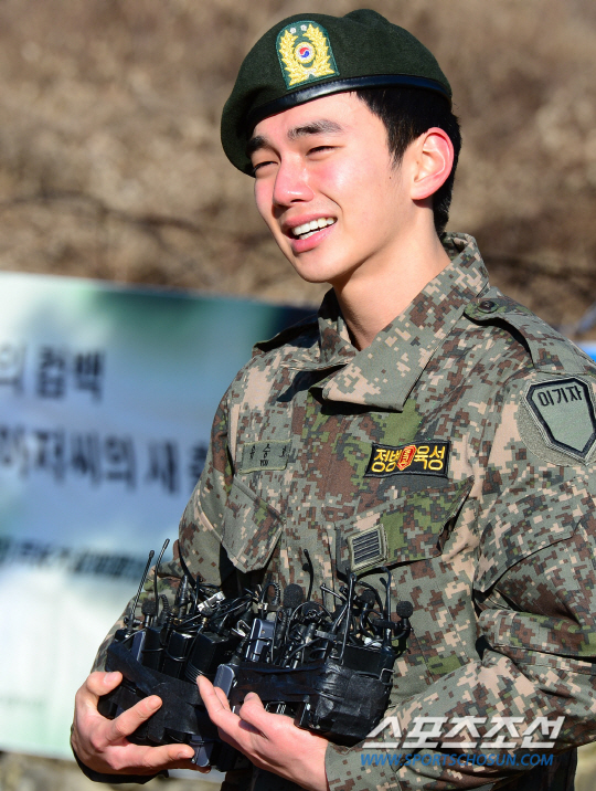 유승호가 4일 오전 강원도 화천에 위치한 이기자 부대 신병교육대대에서 전역 신고식을 갖고 제대했다. 유승호가 포토타임을 갖고 있다. 김보라 기자 boradori@sportschosun.com/2014.12.04/