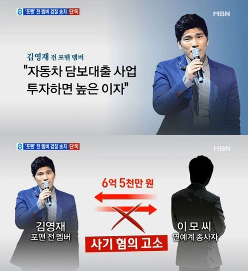 5일 서울중앙지검 중요경제범죄조사1팀(팀장 송승섭 서울고검검사)은 지인들에게 투자금 명목으로 8억여 원을 받아 가로챈 혐의(특정경제범죄가중처벌법상 사기 등)로 포맨 전 멤버 김영재를 불구속 기소했다고 밝혔다.