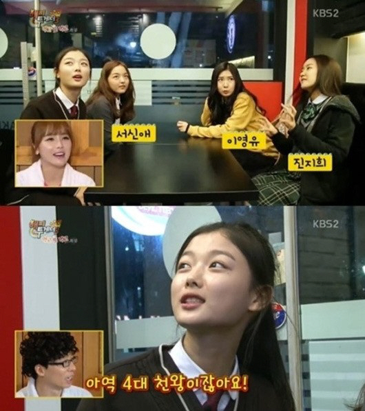 '아역배우 4대천왕' 김유정, 서신애, 이영유, 진지희가 폭풍 먹방 후 아저씨 같은 매력을 발산해 주위를 폭소케 했다.