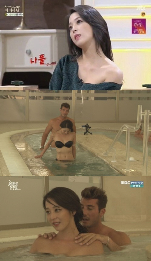 홍석천은 "한고은 옷이 살짝 흘러내렸는데 둘 다 표정이 '어후' 이렇게 됐다"고 폭로해 스튜디오를 웃음바다로 만들었다.