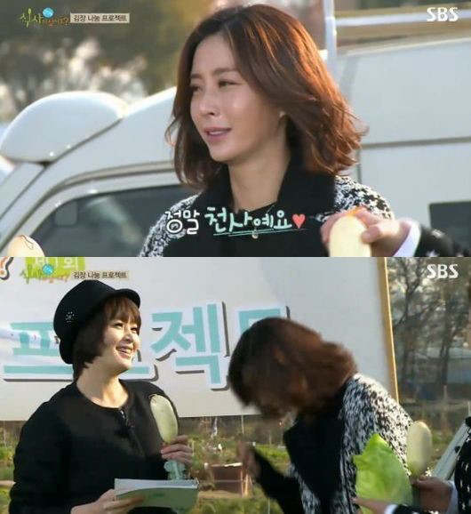 이날 송윤아는 일일 김장MC를 맡은 김혜수에게 "김혜수는 어릴 때부터 내 롤모델이자 내 희망이다. 중학교 때 팬사인회에 찾아가 함께 사진도 찍었다"고 밝혔다. 그러면서 "이렇게 같이 하게 된 소감이 어떠냐"는 질문에 "꿈인지 생시인지 모르겠다"고 말했다.