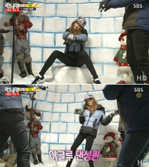이날 방송에서는 스노우 파크에 간 '겨울 팀' 개리-경수진 커플, 지석진-송지효 커플, 하하-이성경 커플은 이글루 탈출 미션을 펼쳤다. 이글루 탈출 미션은 음악에 맞춰 춤을 추다가 수십 개의 흩어진 벽돌 중 하트 벽돌을 맞추는 게임.