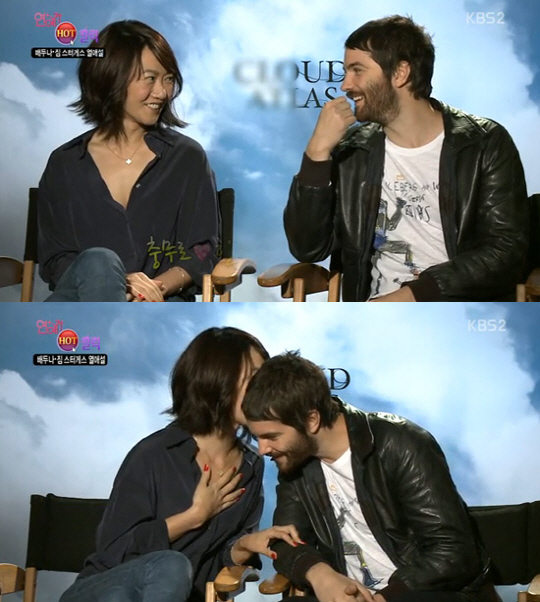 이에 두 사람에 많은 이들의 시선이 쏠렸고, 지난 2012년 '클라우드 아틀라스' 홍보 차 내한한 짐 스터게스가 KBS2 '연예가중계'와 진행한 인터뷰 장면이 새삼 화제다.
