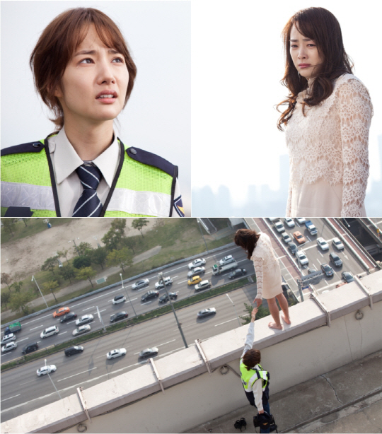 9일 KBS2 새 월화극 '힐러' 제작진은 채영신(박민영)과 주연희(김리나)의 아찔한 옥상 촬영 스틸을 공개했다. 이번에 공개된 사진은 특종을 위해서라면 변장 잠복 잠입취재도 마다하지 않는 인터넷 신문 연예부 기자 채영신의 에피소드를 담은 것이다. 공개된 사진에는 아찔한 높이의 옥상 난간에 서있는 주연희의 모습과 경찰복을 입고 주연희에게 손 내밀고 있는 채영신의 모습이 담겼다. 특히 채영신은 애잔한 눈빛으로 눈물을 흘리고 있어 궁금증을 자극한다.