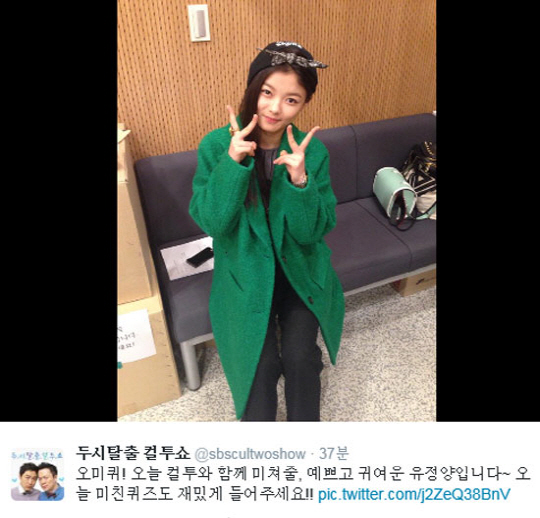 배우 김유정이 '컬투쇼'에 출연을 알리는 깜찍한 인증샷을 공개했다.