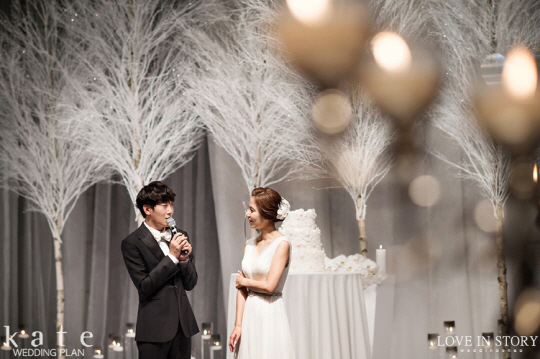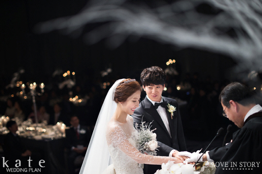 주례 앞에 나란히 선 신랑 신부의 모습이 행사장 좌우의 대형 스크린을 통해 비춰지는 가운데 뮤지컬 배우의 축가가 울려 퍼지는 모습은 마치 한 편의 뮤지컬을 연상시켰다. 허규는 "처음과 같은 마음으로 행복하게 살겠다"고 말했고 신동미는 "감사하는 마음으로 서로 아끼고 사랑하겠다"라며 행복한 미소를 보였다.