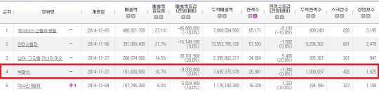 '인터스텔라' 등 쟁쟁한 할리우드 블록버스터의 공세 속에서도 지난 26일 오후 6시 전야 개봉과 동시에 한국영화 박스오피스 1위를 기록한 '빅매치'는 전 세대를 아우르는 오락영화의 미덕을 보이며 고른 지지층을 확보하고 있어 더욱 강력한 흥행 상승세를 보일 전망이다.