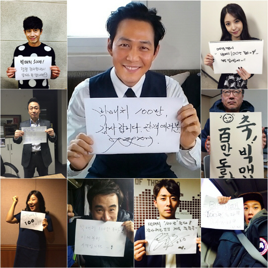 한편, '빅매치'의 100만 관객 돌파를 자축하며 배우들이 인증샷과 감사의 인사를 전해 화제가 되고 있다. 공개된 사진에는 이정재, 신하균, 이성민, 보아, 김의성, 라미란, 배성우, 손호준, 최우식까지 9인의 모습을 모두 만나볼 수 있다. '빅매치'를 응원하는 포즈와 함께 100만 관객 돌파에 힘이 되어준 관객들에게 전하는 감사의 메시지가 담긴 인증샷은 훈훈함을 자아내며 흥행에 힘을 보태고 있다.