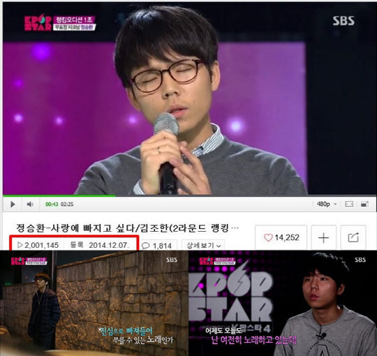 'K팝 스타4' 정승환의 무대 영상 다시 보기가 이틀 만에 200만뷰를 돌파, 전무후무한 돌풍을 일으키고 있다.