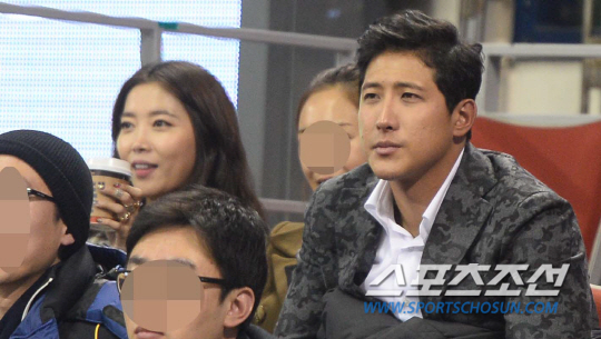 9일 오윤아와 황재균은 2014-2015 프로농구 서울SK와 전주KCC의 경기가 열리는 잠실 학생체육관을 찾았다.