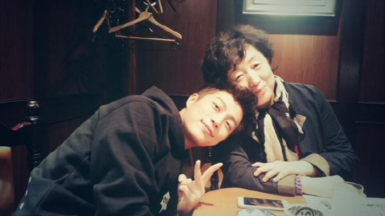 공개된 사진 속에는 카메라를 향해 브이 포즈를 취하며 환한 미소를 짓고 있는 윤두준과 그의 어머니의 모습이 담겨있다.