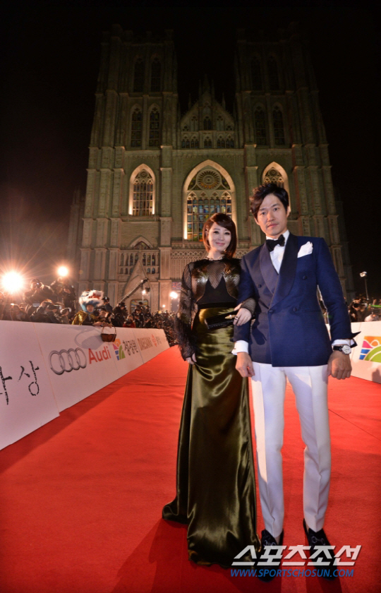지난해 열린 제34회 청룡영화상 시상식에서 포즈를 취하고 있는 김혜수와 유준상. 최문영 기자 noodle@sportschosun.com/2013.11.22