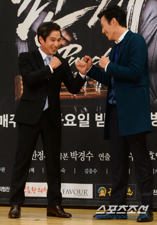 탤런트 조재현과 김래원이 11일 SBS 목동사옥에서 열린 월화드라마 '펀치'의 제작발표회에서 포토타임을 갖고있다. 드라마 '펀치'는 시한부 인생을 사는 대검찰청 반부패부 박정환 검사의 생애 마지막 6개월을 그린 드라마로 김아중이 박정환(김래원)의 전 부인이자 강직한 서울지검 검사 신하경 역을, 배우 조재현이 부패와 비리의 온상인 검찰총장 이태준 역을 연기한다. 목동=최문영 기자 deer@sportschosun.com