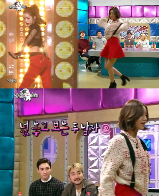 이날 방송에서 혜리는 걸스데이 '기대해' 안무였던 '멜빵 춤'을 몸소 선보였다. 깜찍한 외모와 섹시한 퍼포먼스는 여전했다. 특히 유병재는 혜리 춤을 보며 흐믓한 표정을 지어 보는 이들의 웃음을 자아냈다.