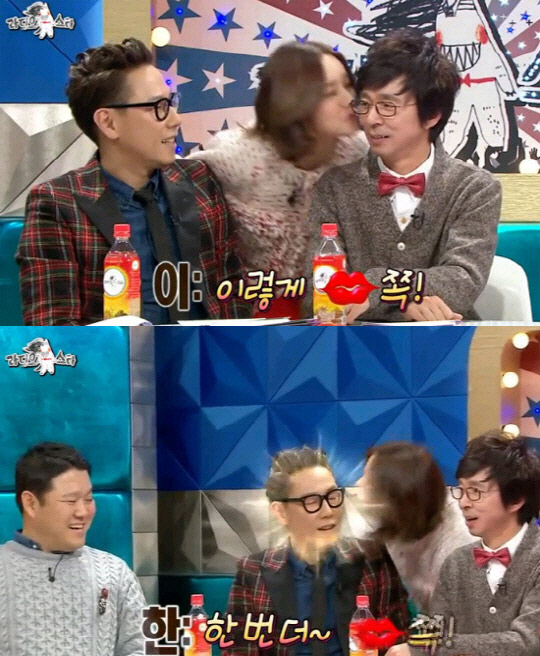 MC들 반응은 각양각색이었다. 김국진은 당황한 기색을 보였고, 윤종신은 황홀한 표정과 "살짝 닿았어"라는 재치 있는 리액션을 보였다. 김구라는 애써 담담한 행동을, 막내 규현은 두 손으로 얼굴을 가리며 어찌할 바를 몰랐다.