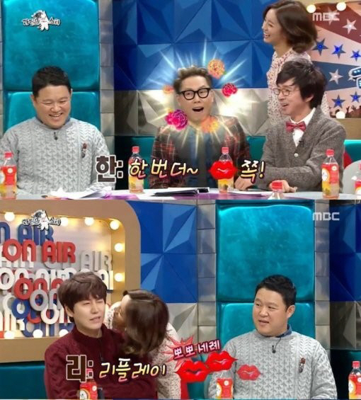 또한 혜리는 "'한' 한 번 더 쪽 '마' 마지막으로 쪽"이라며 윤종신과 김구라에게도 뽀뽀하는 시늉을 했고 마지막으로 규현을 앞에 두고 "혼날 것 같은데"라고 슈퍼주니어 팬들을 의식하다가 "'리' 리플레이 쪽"이라고 뽀뽀하는 시늉을 해 현장을 초토화 시켰다.