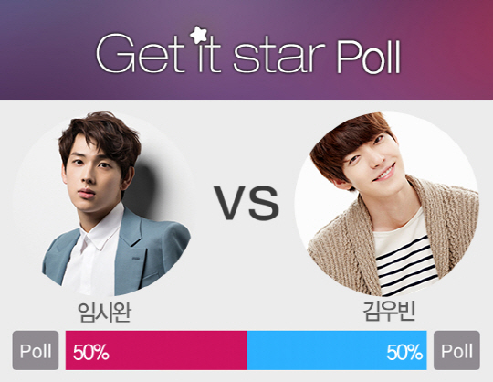 'Get it star'는 쟁쟁한 5인의 신인남우상 후보 가운데 최근 '미생'으로 큰 인기를 얻고 있는 임시완과 영화 '기술자들'의 개봉을 앞둔 김우빈을 주인공으로 선정했습니다. 안재홍, 최진혁, 박유천, 이 3인과 함께 후보에 이름을 올린 임시완과 김우빈 가운데 신인남우상의 영예를 안을 배우는 과연 누가 될까요.