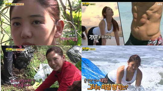 이태임은 지난 방송에서는 탄탄한 몸매를 드러낸 바 있다.