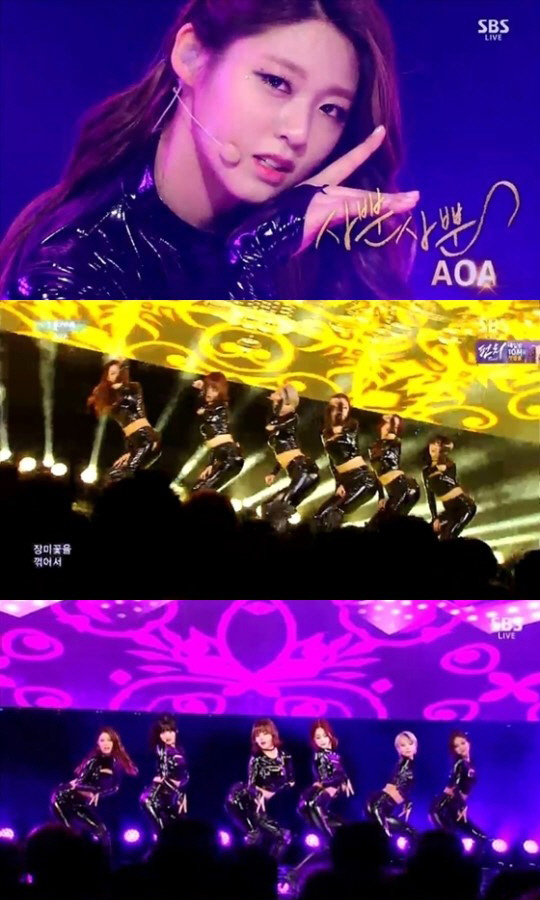 AOA는 14일 방송된 SBS '인기가요'에서 최근 활동중인 '사뿐사뿐' 무대를 선보였다.