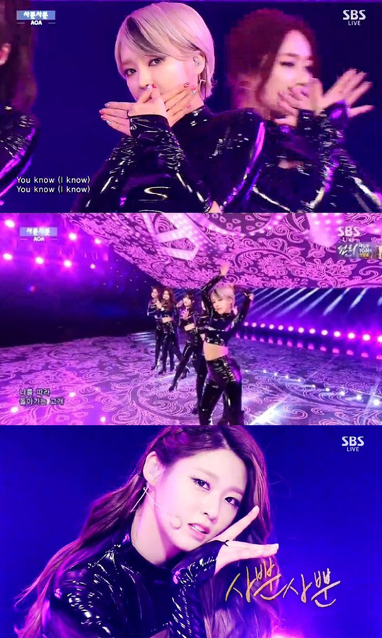 AOA는 14일 방송된 SBS '인기가요'에서 최근 활동중인 '사뿐사뿐' 무대를 선보였다.