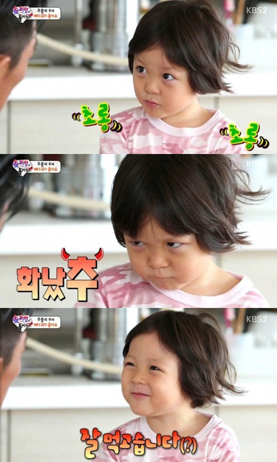 '슈퍼맨이돌아왔다' 추사랑, 천태만상 매력…초롱초롱 눈빛 미소에 뾰로통 '화났추'까지