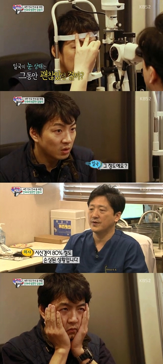 지난 14일 방송된 KBS2 프로그램 '해피선데이-슈퍼맨이 돌아왔다'에서 송일국은 삼둥이의 시력과 눈 건강을 체크하기 위해 삼둥이를 데리고 안과를 찾았다.