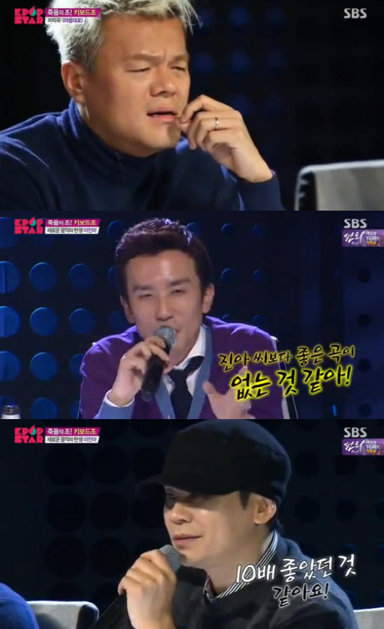 특히 박진영은 "음악 관둘게요. 진짜 음악 못 하겠다"라는 파격적인 발언을 하며, "정말 숨고 싶다. 가사에 대한 기대를 하다가 한 글자를 못 들었다. 정신을 잃었다. 처음에 전주를 칠때 의식을 잃었다. 그 다음부터 조금만 세게 나오면 몸이 깜짝 놀란다. 노래를 부르는데 가사가 안 들린다. 이런 음악을 들어본 적이 없다. 뭔지 모르겠다. 음악의 장르를 도통 모른다. 아직까지 몸이 힘들다"고 말했다.