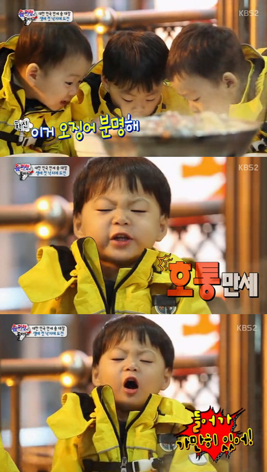 지난 14일 방송된 KBS2 '슈퍼맨이 돌아왔다'에서는 송일국과 삼둥이 대한 민국 만세가 생애 첫 낙지 시식에 나선 모습이 전파를 탔다.