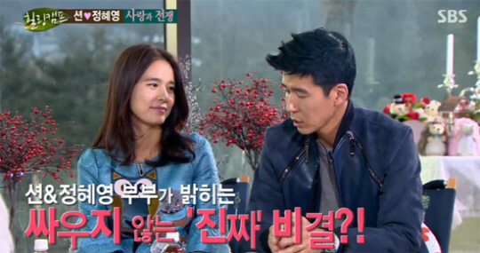 연예계 대표 '잉꼬 부부' 션과 정혜영이 부부 싸움을 하지 않는 비결을 공개했다.