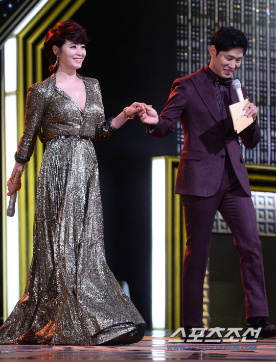 제 35회 청룡영화상 시상식이 17일 서울 신문로 세종문화회관에서 열렸다. 김혜수와 유준상이 2부에서 의상을 갈아입고 무대에 나오고 있다.