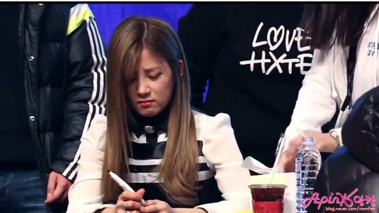 이 영상은 지난 13일 에이핑크의 팬 사인회 현장에서 팬들이 직접 찍은 것이다. 영상 속에서 초롱은 다른 때와 같이 팬들과 소통하고 대화 하는데 집중을 하고 있었다. 그러다 다리를 다친 한 여성팬이 선물을 주었고 그 선물을 받은 초롱은 감동을 받고 눈물을 흘리기 시작했다. 그 선물은 억만금의 선물이 아닌 바로 스케치북으로 한 이벤트였다.