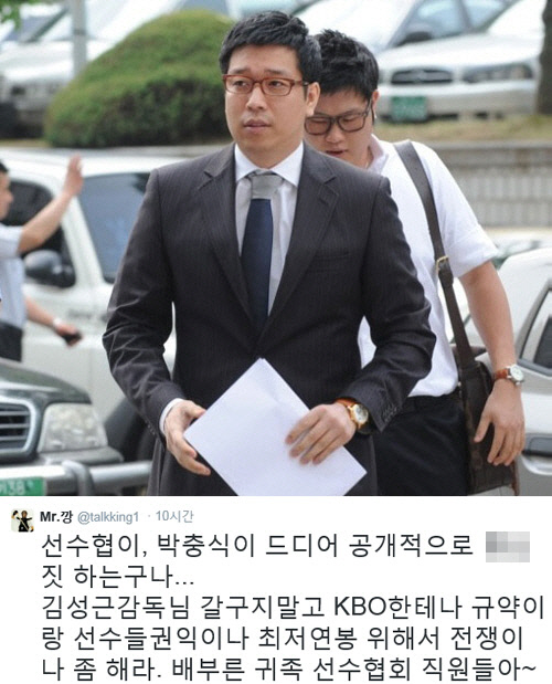 프로야구 선수협 박충식 사무총장이 프로야구 한화 이글스 김성근 감독을 비판한 가운데, 방송인 강병규가 이를 비난했다.