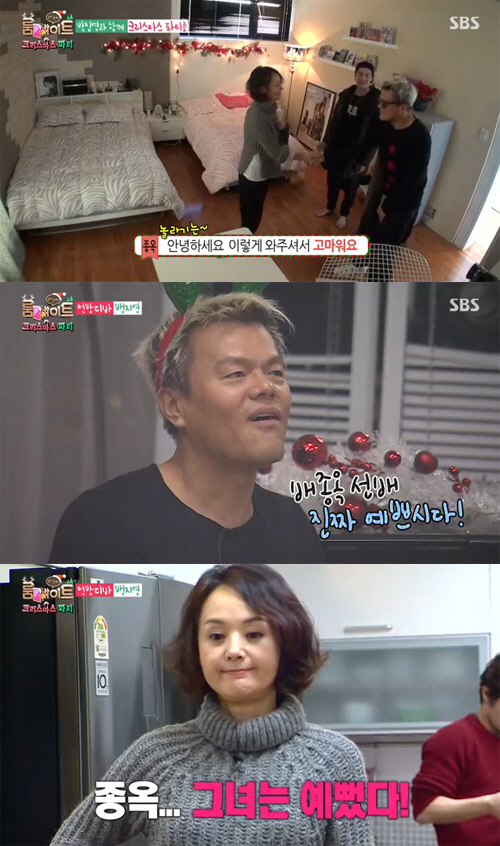 배종옥을 지켜보던 박진영은 "진짜 예쁘시다. 저렇게 예쁜 줄 몰랐다. 남자들이 많이 울었겠다"며 미모를 극찬했다. <스포츠조선닷컴>