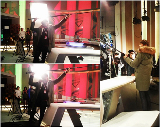 사진에는 일일 마이크맨으로 변신한 김영광이 스태프의 일을 돕는 모습이 담겨 있다. 김영광은 모델 출신다운 기럭지를 십분 활용해 스태프를 대신해 멀리 떨어진 곳까지 거뜬히 마이크 대를 올리며 흑기사 역할을 해냈다.