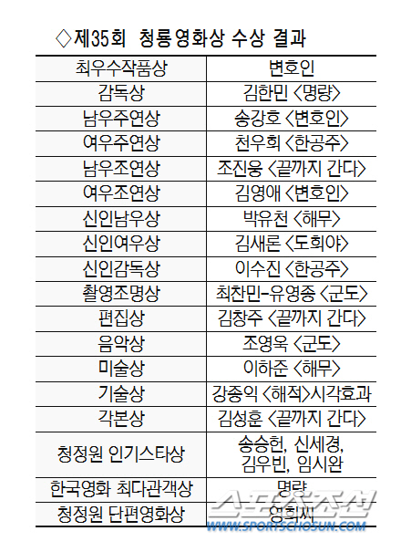 최우수작품상은 압도적인 표차이로 '변호인'이 수상작이 됐다. 심사위원들은 "최우수 작품상은 모든 부분에서 우위가 인정되는 작품이 수상자가 돼야 한다"는 의견을 모았고 '변호인'에 대해 "우리 영화사에 길이 남을 영화다"라고 치켜세웠다. 또 정치적인 입장을 떠나서라도 영화적 완성도가 높다는 평을받으며 '변호인'에 7표가 모두 갔다. '명량'을 선택한 네티즌을 제외하고는 '변호인'이 8명 심사위원의 표를 독식하는 이례적인 현상을 낳았다.
