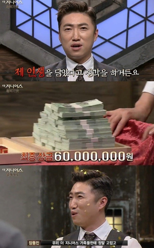 이날 장동민은 "살면서 이런 사람들하고 멋진 승부를 할 수 있는 기회가 없었다. 우리 '더 지니어스3' 가족들한테 정말 고맙다. 끝까지 포기하지 않으면 누구나 승리를 쟁취할 수 있다고 이 자리에서 이제는 얘기할 수 있을 것 같다"라고 소감을 전했다.
