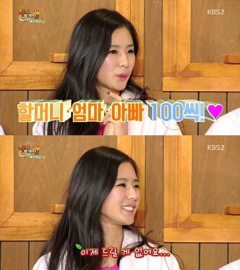 박기량은 "'해투' 출연 이후 부모님께 용돈을 처음 드려봤다. 그전에는 솔직히 따로 들어오는 일도 없었고 치어리더 일만 했다"며 "카드값을 못 갚아서 아버지한테 빌린 적도 있었다. '해투' 출연 후 주류 광고도 찍었다"고 말해 웃음을 유발했다.
