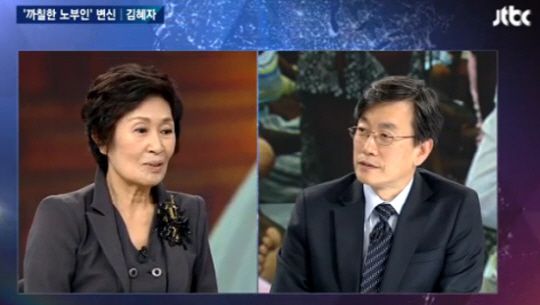 배우 김혜자가 JTBC '뉴스룸'에 출연해 손석희 앵커와 인터뷰를 진행했다.