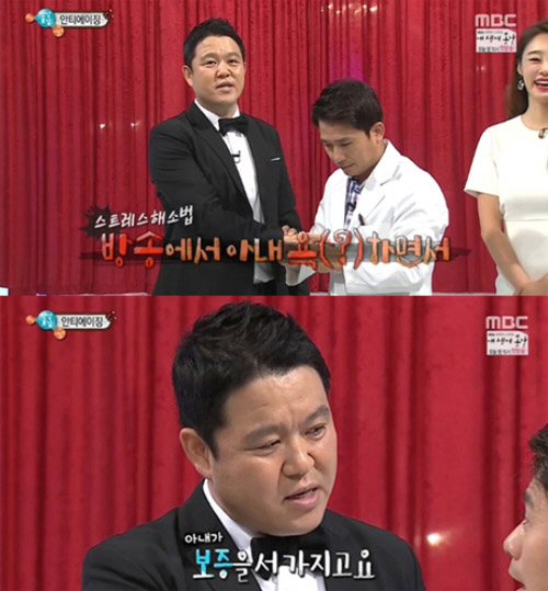 김구라는 지난 9월 MBC '건강 보감 리턴즈'에서 전문가에게 건강 상태를 확인하며 "나는 건강하다. 방송에서 아내를 욕하면서 스트레스를 풀었다. 아내가 보증을 서서 스트레스를 받았지만 1년 정도 돼 많이 털어냈다"고 고백했다.