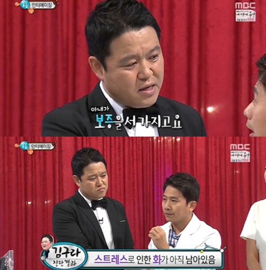 당시 김구라는 "나는 건강하다. 방송에서 아내를 욕하면서 스트레스를 풀었다"며 "아내가 보증을 서서 스트레스를 받았지만 1년 정도 돼 많이 털어냈다"고 밝혔다.