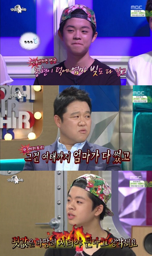 당시 방송에서는 청소년 금전 문제에 관해 이야기를 나눴고, MC 윤종신은 "동현이도 돈을 버니까 (돈 쓸) 권리가 있다"고 말했다. 이에 김구라는 "동현이 돈은 여태까지 엄마가 다 썼다"고 폭로했다.