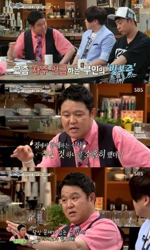 김구라는 "집에서 함께하는 식사 등 기본적이고 작은 것 하나를 소홀히 했더니 가치관이 달라졌다. 밥상에서 얘기를 해야 하는데 그런게 없었던거다"면서 "아내와 문제가 많지만 극복 하고 있는 중이다. 부인과 대화를 나눈 뒤 심리치료를 받고 있다"라고 고백했다.