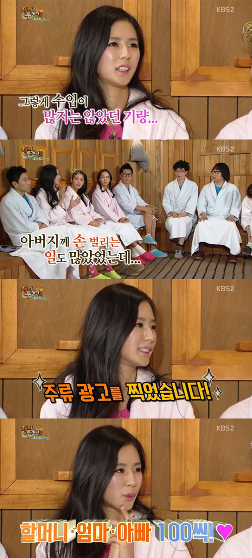 이날 박기량은 "'해피투게더' 출연 후 부모님께 용돈을 처음 드렸다. 그전에는 솔직히 따로 들어오는 일도 없었고 치어리더 일만 했다"며 "카드값을 못 갚아서 아버지께 빌린 적도 있었다"고 털어놨다.
